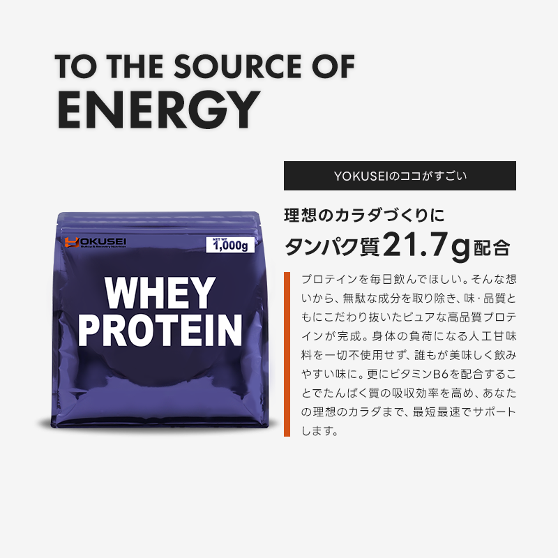 人工甘味料を使用せず甘味料にはステビアを使用。更にビタミンを11種類配合することによりトレーニング、日々の生活のサポートをします。ホエイ原料を厳選し水に溶かして美味しい100%ホエイプロテインです。